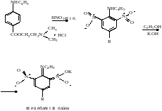 Б) дикаин растворяют в воде и добавляют раствор родонида аммония NH4CNS (тиоционат аммония). Образуется осадок белого цвета, имеющий характерную температуру плавления (130-1320С).