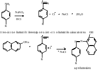 Преп. Кипятят с р-ром соляной к-ты , охлаждают и доб. нитрит натрия. Полученный раствор приливают к щелочному раствору бета-нафтола. Появляется вишнёво-красное окрашивание.
