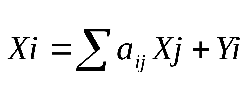 Используя коэффициенты прямых затрат, уравнение баланса производства (1), может быть записано следующим образом: