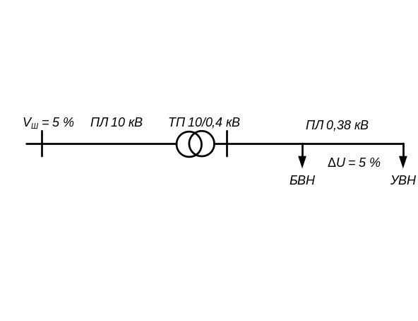 ПЛ. 10кВ ΔUдоп=±5% ПЛ. 0,4кВ ΔUдоп=±5%