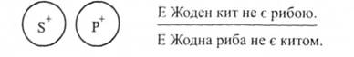1(SP) —"0(S ~Р): "Деякі S є Р, отже, деякі S не є не Р".