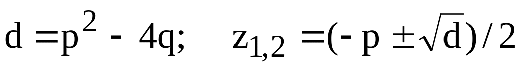 Пример 1.5. Дано приведенное квадратное уравнение z2 + pz + q = 0. Входными данными задачи (то, что выше обозначалось как x) являются значения коэффициентов р и q, (p, q) = x. Согласно сведениям из школьной алгебры, решения уравнения определяются по формулам