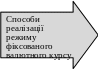 Конкретними способами peaлізації режиму фіксованого валютного курсу можуть бути такі.