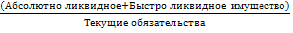 Абслолют. Ликвид.+Быстро ликвид.+Хорошо ликвид. Имущ./Текущ. Обязат-ва=