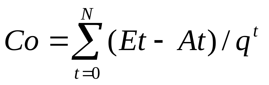 C данных позиций в качестве предпринимательского результата хозяйствования предприятия в будущих периодах (по годам) рассматривается показатель ценности капитала [8, 76-77], охватывающий дисконтированные по выбранной ставке процента (норме дисконта) поступления и выплаты или сальдо платежей по годам в рассматриваемом периоде: