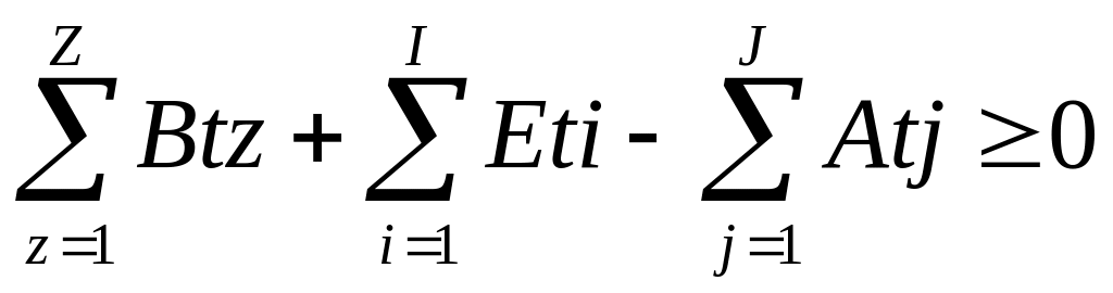 Btz – остаток платежных средств вида z в момент t, z = 1,…,Z.