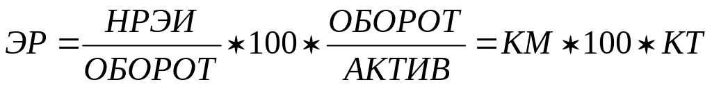 ЭР = ОБОРОТ *100%* АКТИВ = КМ * КТ = 18%;