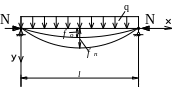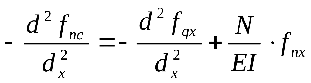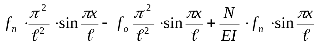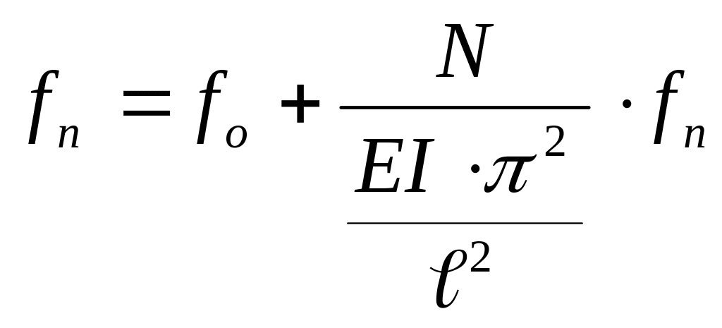 Ось стержня получит дополнительное перемещение, максимальный прогиб – fn . Пусть изогнутая ось стержня будет синусоидой при действии только нагрузки q, а также при совместном действии q и N.