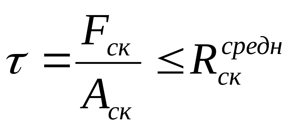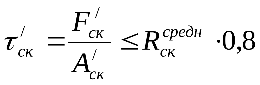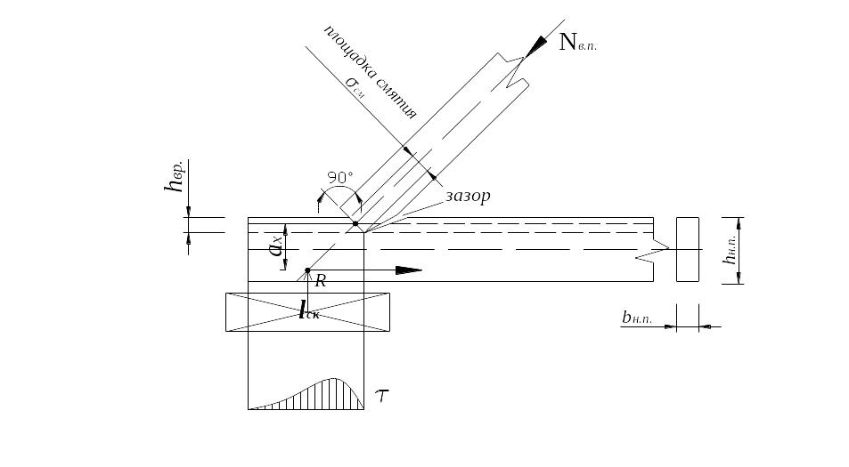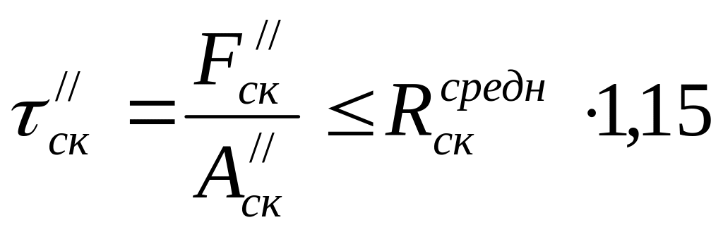 На второй зуб передаём всю силу от верхнего пояса F''ск = Nв.п.× cosα, A''ск = bп × l''ск