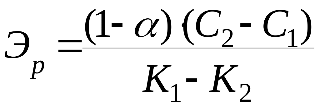 Коэффициент эффективности дополнительных инвестиционных вложений (коэффициент сравнительной эффективности) – показывает какой эффект в виде превышения годового результата над затратами вызывает увеличение на единицу инвестиций. Коэффициент сравнительной эффективности определяется: