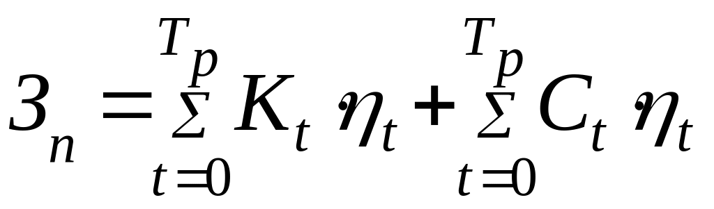 При поступающих эксплуатационных расходах и одноэтапных инвестициях модифицирование приведенных затрат определяется: