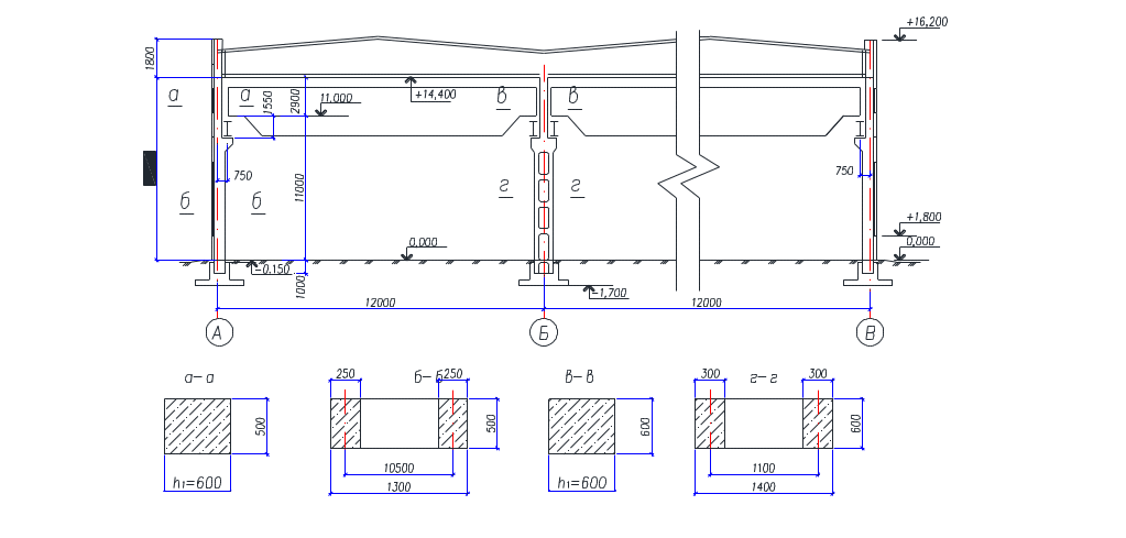 Рассмотрим варианты конструктивного решения здания с шагом 6 и 12 м.
