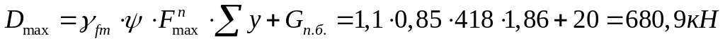 де Fmax та Fmin – розрахункові граничні значення вертикального тиску на колесо, відповідно на більш або на менш навантаженій стороні крана;