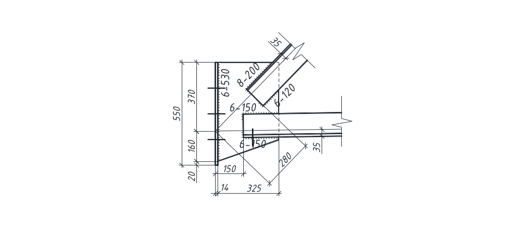 За остаточну приймаємо висоту фланця визначену з умов з’єднання стрижнів у вузлі, не меншу 34 см.