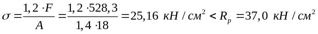Перевіряємо міцність опорної фланця мінімальних розмірів (14х180мм) на зминання: