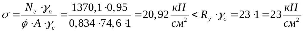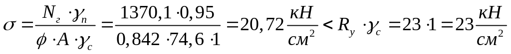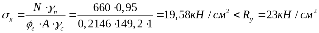 Перевіряємо стійкість колони у площині дії моменту за формулою:
