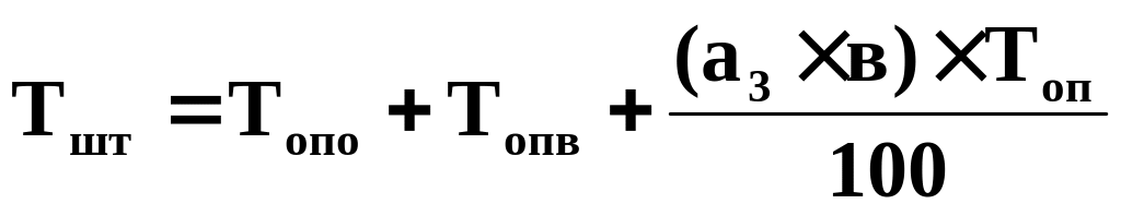 где Топ - норматив оперативного времени на единицу продукции; а4 - суммарный норматив времени на обслуживание рабочего места и на отдых и личные надобности, % к Топ.