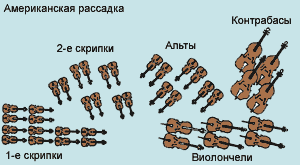 Давать советы по записи симфонического оркестра на страницах журнала – дело достаточно рискованное. Очевидно ведь, что за такую работу должны браться специалисты такого уровня, что подобные "уроки" им не нужны. Однако… Чего не бывает в нашей жизни… Вот моим коллегам, которым вдруг вменили такую обязанность, "посвящаю эти строки". Чтобы грамотно подойти к расстановке микрофонов и записи симфонического оркестра, надо знать несколько разновидностей расположения музыкантов в этом "самом большом музыкальном инструменте". Ко второй половине ХХ века сложились две основные рассадки оркестра, встречающиеся в концертной практике сейчас в равной степени часто. Это так называемые "немецкая" и "американская" рассадки. Ни одна из них не является идеальной для звукорежиссера, однако некоторые преимущества одной перед другой имеются.