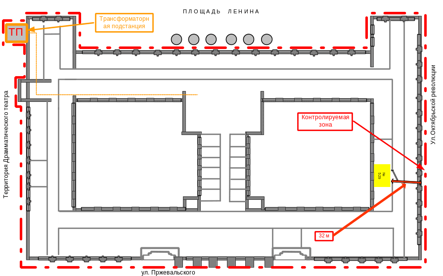 На рисунке 2 представлено территориальное расположение ИСПДн относительно контролируемой зоны.
