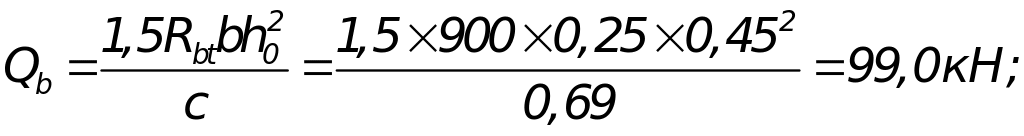 А их сумма Qb + Qsw = 99,0 + 74,47 = 173,47 кН > 115 кН больнее поперечного усилия Q, возникающего от внешней нагрузки.