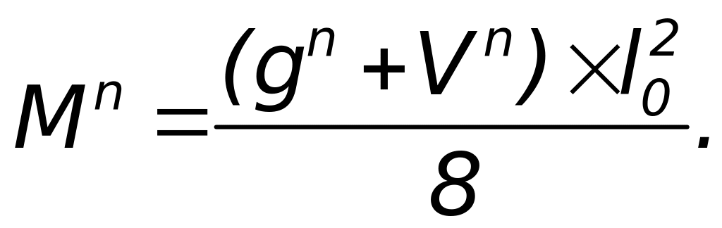 Расчет по образованию трещин в изгибаемом элементе сводится к тому, что сравнивается момент трещинообразования Mcrc (момент, воспринимаемый нормальным сечением при образовании трещин) с моментом от внешних нагрузок М. Если M < Mcrc, то трещины в изгибаемом элементе не образуются. При этом изгибающий момент М определяется от нормативных нагрузок. Например, для статического расчета, представленного на рисунке 4.7 момент от нормативных нагрузок вычисляется по формуле: