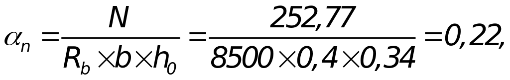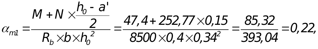 2). Сечение – h = 0,38 м; b = 0,4 м, а = а' = 0,04 м, h0 = h – a = 0,38 – 0,04 = 0,34 м, высота верхней части колонны Н1 = 3,35 м;