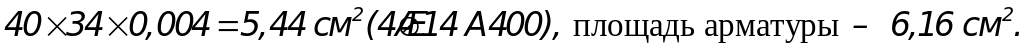- расчетная длина: l0 = 2H1 = 6,7 м, = l0 / h0 = 19,7 – минимальный процент армирования s% = 0,4% (см. таб. 5.4);