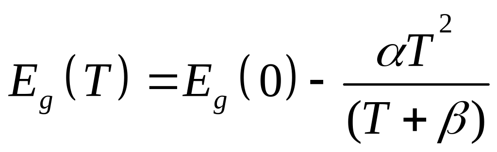 Варшни И.П. показал, что наблюдаемую на опыте температурную зависимость ширины запрещенной зоны для алмаза, кремния, германия, карбида кремния, арсенида галлия, фосфида индия и арсенида индия можно выразить эмпирической формулой
