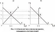 Кейнсіанський підхід розглядав заощадження як взагалі незалежні від ставки проценту, тому що люди зберігають надлишкові кошти в банку не з метою одержання додаткового доходу, а з багатьох інших причин – назбирати кошти на купівлю будинку, на навчання дітей, на старість і т.п., тому крива заощаджень є вертикальною (рис. 4.1.б).