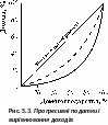 Прогресивною податковою системою вважається така, за якої після сплати податків нерівність в економічному положенні людей скорочується. Крива Лоренця на рис. 5.3 ілюструє вплив прогресивної податкової системи на диференціацію у розподілі доходів: після сплати податків крива (пунктир) наближається до лінії повної рівності.
