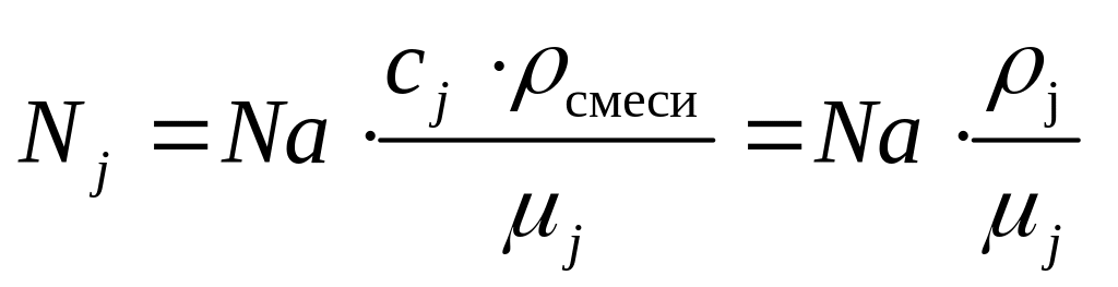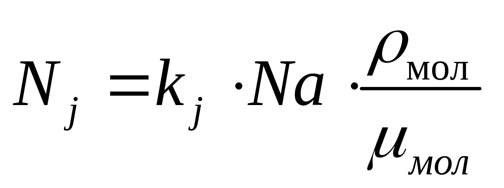 В случае сложных химических соединений массовая концентрация j-го элемента определяется числом атомов (kj) j-го элемента, входящих в соединение и молекулярной массой соединение μмол, тогда N: