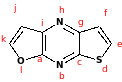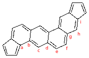 При записи в линейном виде полициклических соединений выбирают первые два конденсированных цикла (например 65), нумеруют буквами по кругу, третий цикл записывают с буквой соединения.