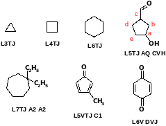 Запись карбоциклов имеет свои особенности: буквой L обозначают начало цикла, числом отмечают размер цикла, конец цикла - J .