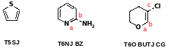 Гетероциклы записываются с буквы T (начало цикла), числом отмечают размер цикла, обозначаются гетероатомы и их положение, конец цикла - J