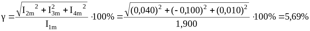 Знаходимо коефіцієнт нелінійних спотворень для транзистора, що працює в режимі АВ по формулі:
