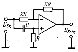 С помощью схемы можно менять фазу выходного напряжений по отношению к входному от — до — 2, в зависимости от частоты; при этом амплитудная характеристика фазовращателя не зависит от частоты. Если поменять местами R и С, то фазовый сдвиг можно менять от 0 до — а функции частоты.