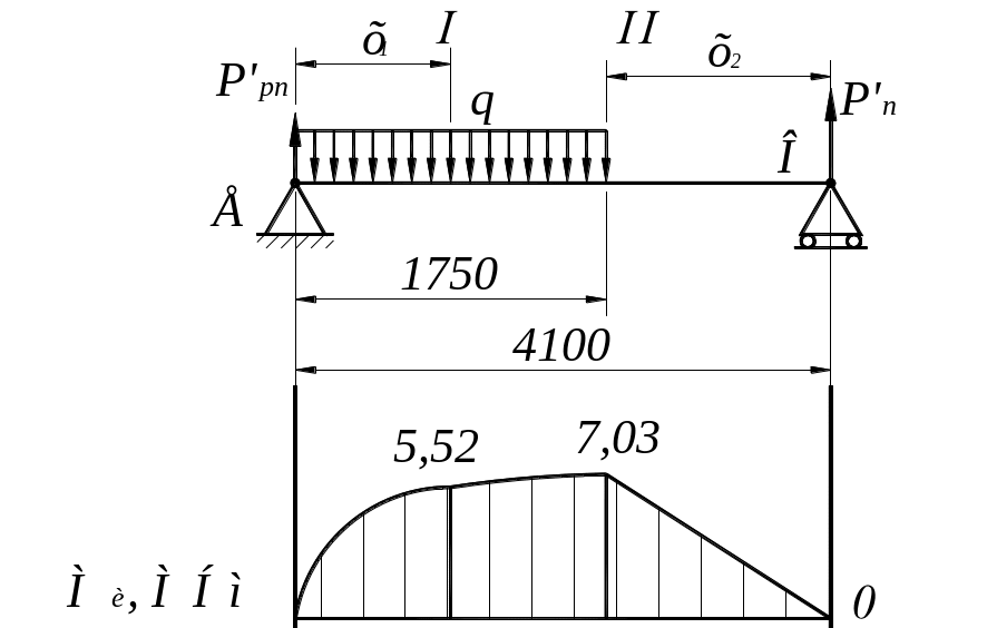 На участке I изгибающий момент изменяется по закону квадратной параболы: