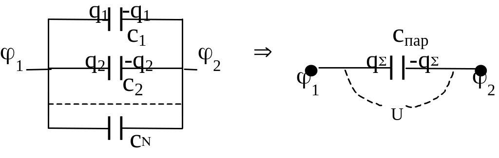 С = q/ = q/U = q1/U + q2/U + … + qN/U = С1 + С2 + ... + СN = С