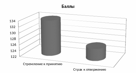 Гипотеза о том, что у испытуемого высокий уровень общения и стремление к принятию доминирует над страхом отвержения, подтвердилась. Испытуемый очень общительный человек, порой даже без меры, разговорчив, любит высказываться по разным вопросам, иногда это раздражает окружающих, тяжело переносит одиночество и ситуации, когда возможности для общения ограниченны. Сильно зависим от мнения окружающих, нередко становится слишком навязчивым в общении и болезненно реагирует, когда испытуемого начинают избегать. Испытуемый охотно знакомиться с новыми людьми, любит бывать в центре внимания, старается постоянно быть в окружении друзей, предпочитает трудиться в коллективе, а не в одиночку, не отказывает в просьбах помочь, хотя и не всегда может их выполнить.