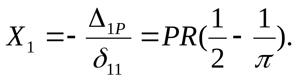 Изгибающий момент в произвольном сечении четверти рамы равен сумме момента от заданных сил МР и момента m1 (с учётом знака), увеличенного в Х1 раз, т.е.