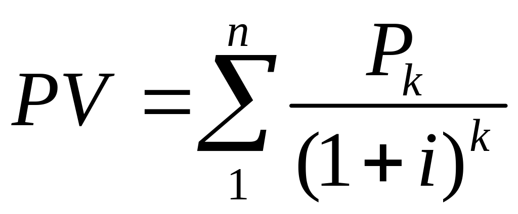 где PV – текущая стоимость (сумма капитала, предоставленная в кредит) капитала; n – число лет (срок службы в годах); i – процентная ставка, характеризующая доходность кредитной сделки: