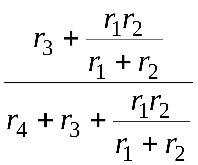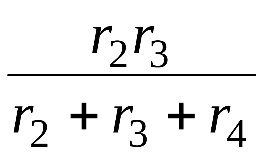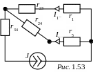 Для определения токов в схеме рис. 1.52 преобразуем треугольник сопротивлений r2-r3-r4 в эквивалентную звезду. Учтём, что сопротивления треугольника равны: