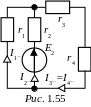 В результате преобразования получим эквивалентную схему рис. 1.53, откуда определим токи I1 и I5: