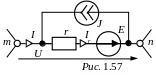 На этой схеме: точки «m» и «n» – конечные точки ветви, становящиеся узлами разветвлённой цепи, потенциалы этих точек, соответственно, m и n; напряжение ветви U = m – n; ток обобщённой ветви (в дальнейшем ток ветви) I, положительное направление которого выбирается обязательно совпадающим с положительным направлением напряжения ветви U; Ir – ток сопротивления ветви; E – ЭДС источника ЭДС ветви; J – ток источника тока ветви; r – сопротивление ветви.