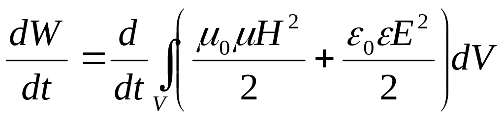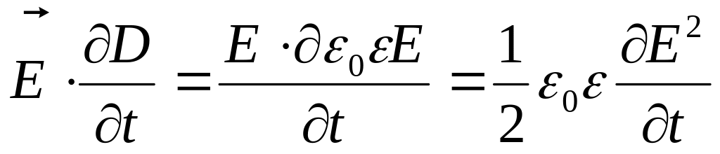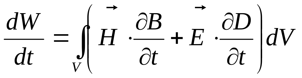 Перетворимо підінтегральний вираз. При цьому використаємо матеріальні рівняння і умову стаціонарності електромагнітного поля. Отримуємо: