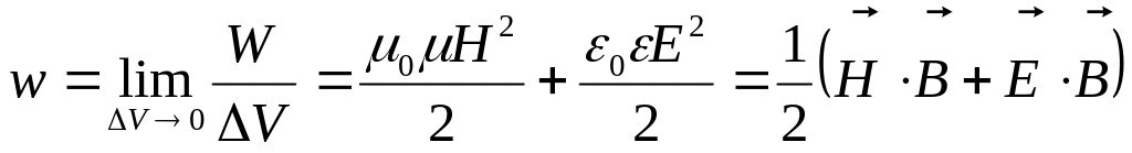 Перший доданок підінтегральної суми визначає густину енергії магнітного поля, а другий – густину енергії електричного поля. Густину енергії можна подати наступним співвідношенням: