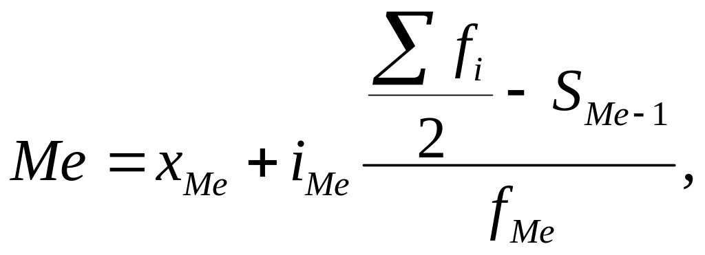 Для расчёта медианы в интервальном ряду используется следующая формула: