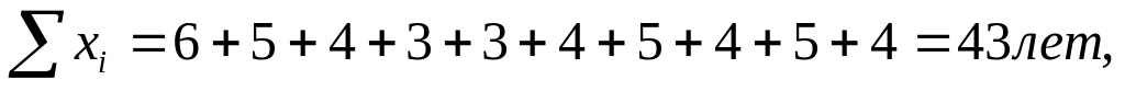 Средняя арифметическая – наиболее распространённый вид средней. Она исчисляется в случаях, когда объём осредняемого признака образуется как сумма его значений у отдельных единиц совокупности. Например, требуется вычислить средний стаж десяти работников предприятия, причём дан ряд одиночных значений признака 6, 5, 4, 3, 3, 4, 5, 4, 5, 4. Тогда объём осредняемого признака