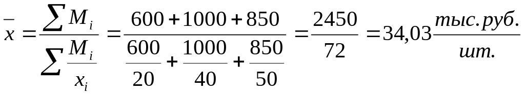 в виде ряда 20, 40, 50 (тыс. руб./шт.). Тогда