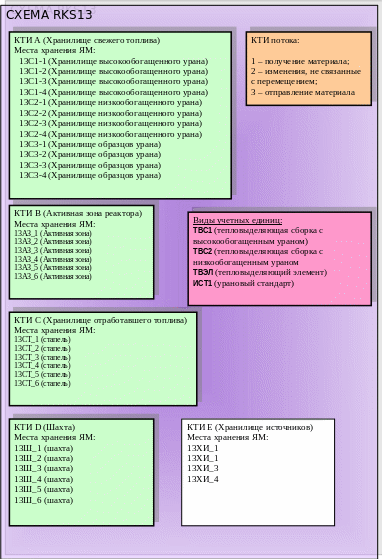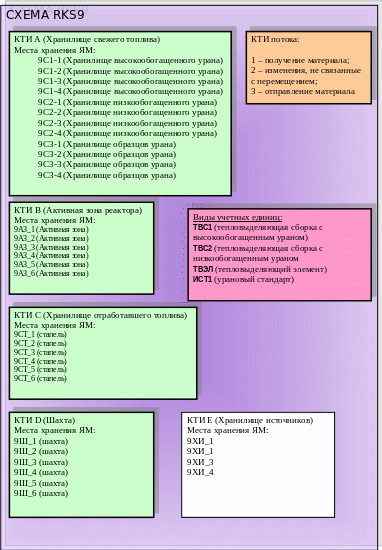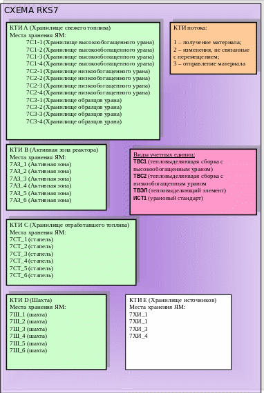 Первоначально в каждой Зоне баланса материала (RKS5-RKS15) находятся 7 партий материала, подлежащего учёту (в качестве примера приведена RKS5):
